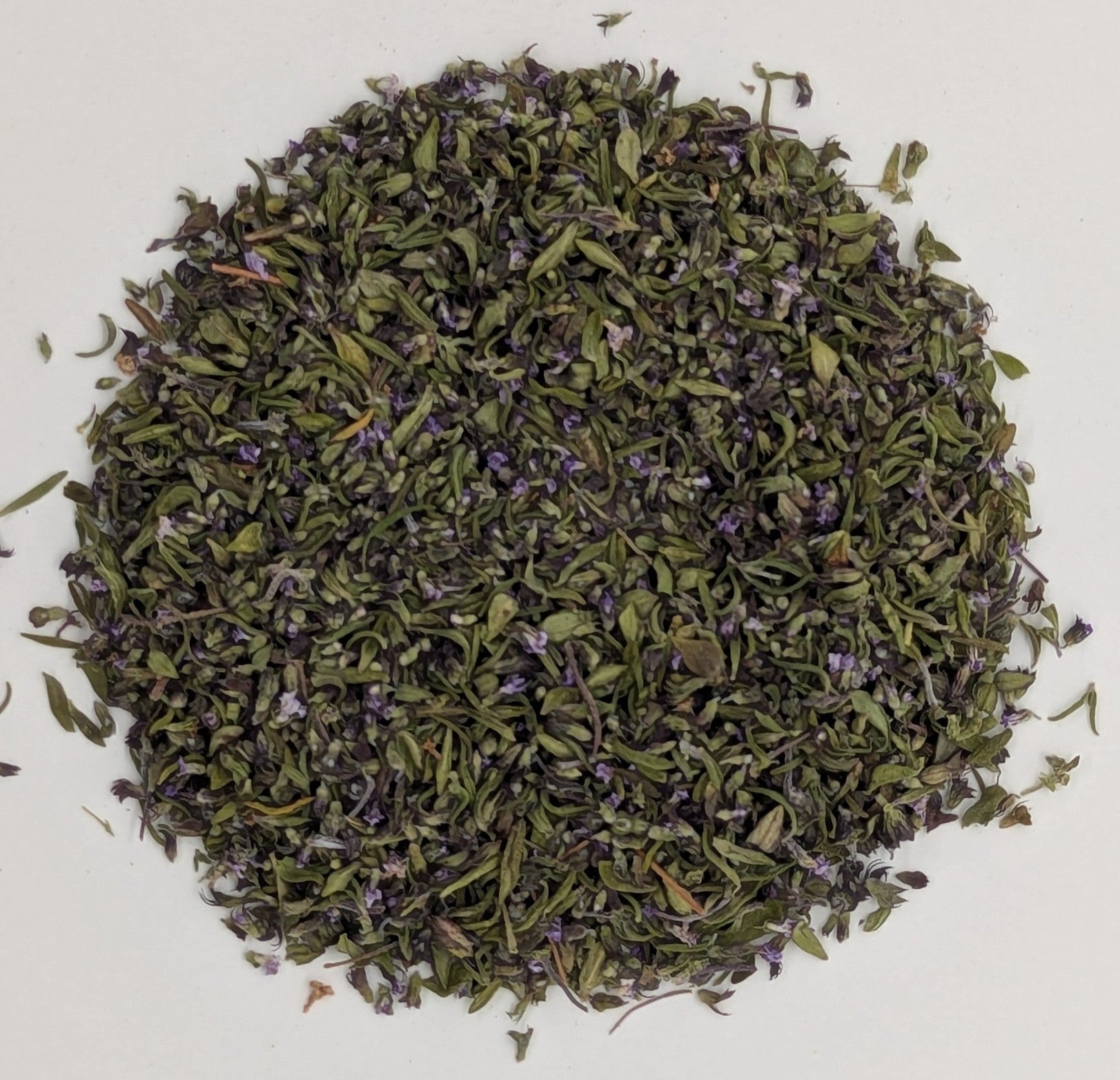 Hand harvested Thyme (Thymus vulgaris) leaf and flowers.